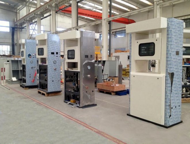(7)加液機(jī)面板采用不銹鋼材質(zhì),包括所有必要的計(jì)量元件、閥門(mén)、安全裝置;加液機(jī)的操作面板和顯示安裝在機(jī)柜上,便于操作。